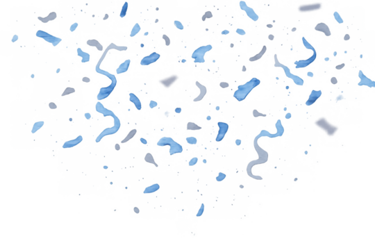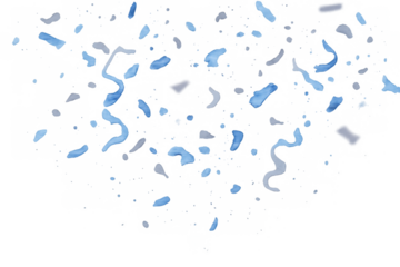 Blue confetti pieces and curling streamers falling down, creating a festive atmosphere for parties, celebrations, and special occasions