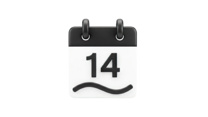 3D Icon of Calendar with Number 14