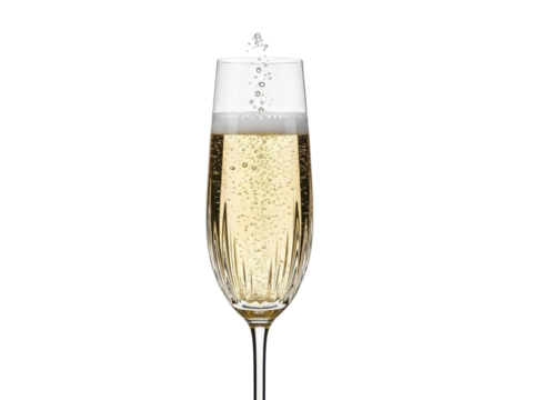 Isolated flute of champagne, fizzy bubbles in an elegant glass ready for a celebration