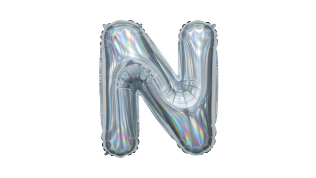 Shiny Silver Letter N Balloon on Black Background for Party Decoration