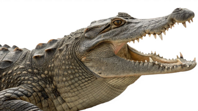 an American alligator (Alligator mississippiensis) full body 3/4 view in a  Wildlife-themed, photorealistic illustration in a PNG format, cutout, and isolated. Generative AI