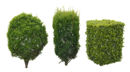 Shrubbery bush tree trimming square shape. Fences and decorating the garden. Green leafed bushes. Png transparency