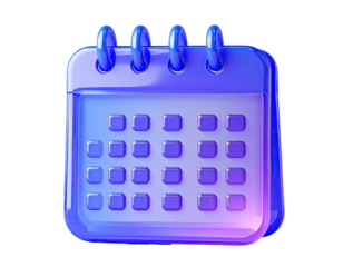 3D glossy, vibrant purple-blue calendar icon