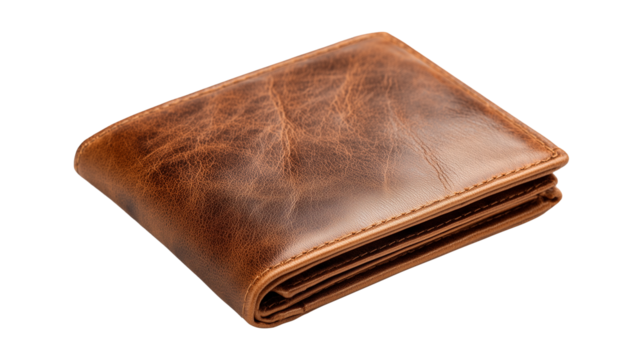 Tan leather wallet isolated on transparent background, stylish accessory for men and women, fashion and everyday use