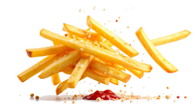 Golden, crispy French fries with ketchup, a delicious fast food snack for everyone to enjoy