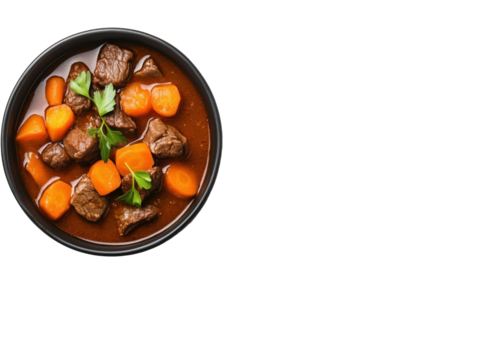 Savor the Comfort of Hearty Beef Stew: Tender Carrots and Rich Aromas Simmering in a Black Pot, Perfect for Bringing Everyone Together at the Table.
