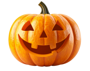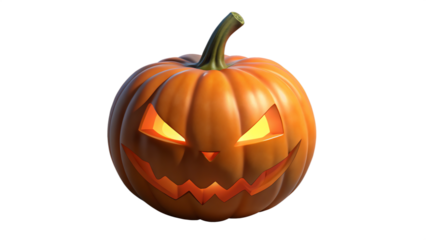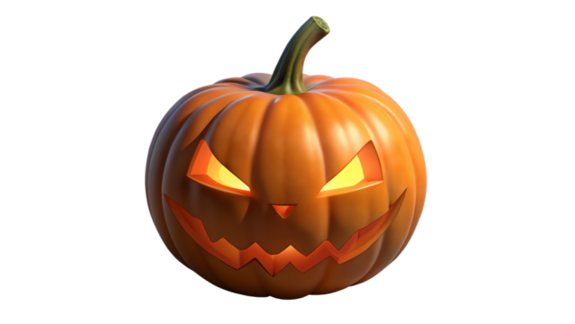 A Halloween pumpkin with a scary face, on transparent background, featuring a spooky jack-o'-lantern for the holiday.