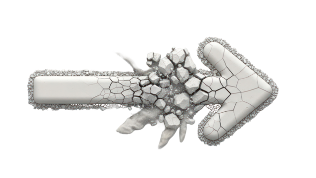 Cracked Arrow Symbol Breaking Apart, Isolated on Transparent Background