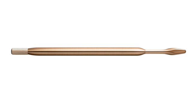 Rose gold metallic precision tool with threaded grip and spatulate end isolated as PNG on transparent background