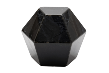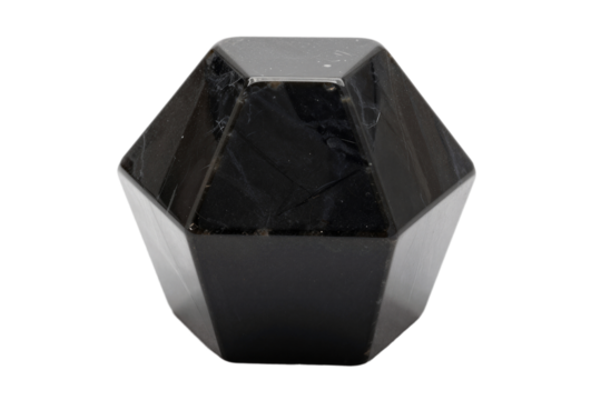 Faceted Black Crystal Specimen in Studio with Minimalist Setting and Precision Craftsmanship