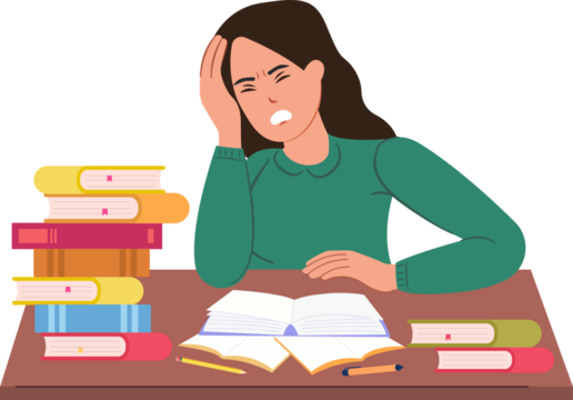Tired depressed frustrated student preparing for exams or tests vector illustration design