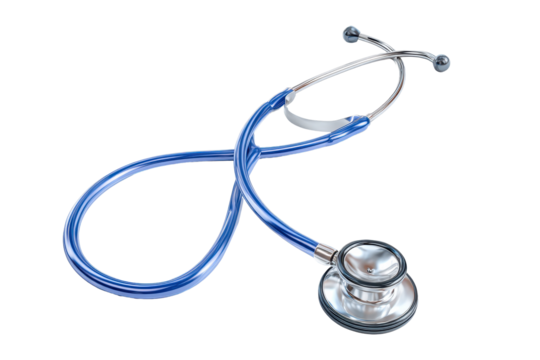 Stethoscope placed on a white surface in a medical setting used for health checks and examinations by healthcare professionals