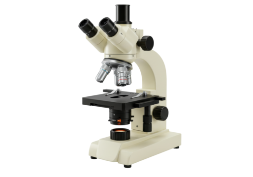 Isolated Biological research laboratory microscope for scientist to examine specimens