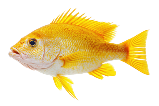 A vibrant yellow snapper isolated on transparent background, showcasing its sleek body and sharp fins, a stunning example of marine lifes colorful diversity