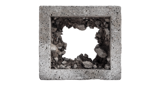 Gray concrete block with a large, irregular hole