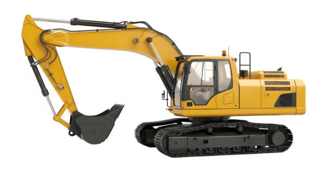 Set of Construction excavator isolated on transparent background, heavy-duty machinery