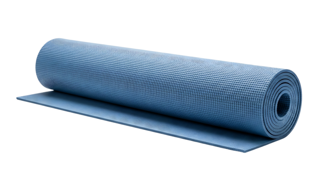 Yoga practice essentials blue exercise mat home studio product indoor fitness gear isolated PNG