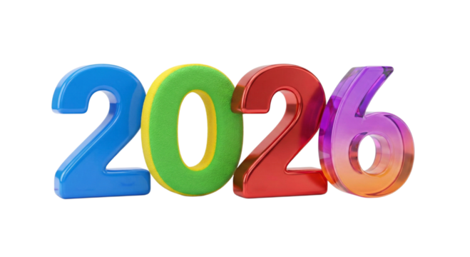 Celebrating the year 2026 isolated on transparent background