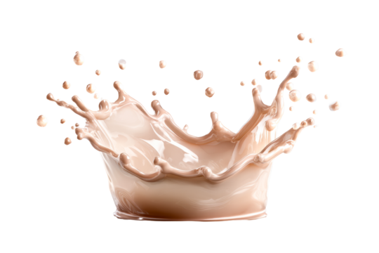 Splash of beige liquid creating dynamic droplets and wave patterns