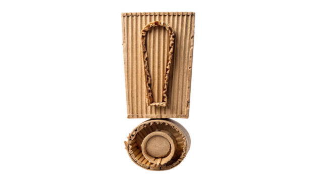 Stack of aged paper and attention grabbing exclamation points symbols on transparent background