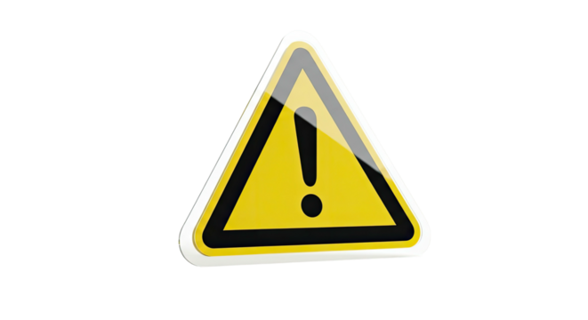 Warning sign with yellow triangle and exclamation mark on transparent background