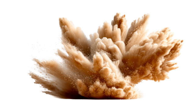 Dynamic powder explosion creating a vibrant cloud of sandy dust particles, suitable for impactful marketing campaigns and energetic visual effects for various projects