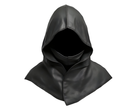 medieval executioner's hood in black leather with detailed stitching isolated background