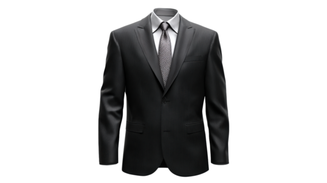 Professional man's black suit with white shirt and tie, ready for business success