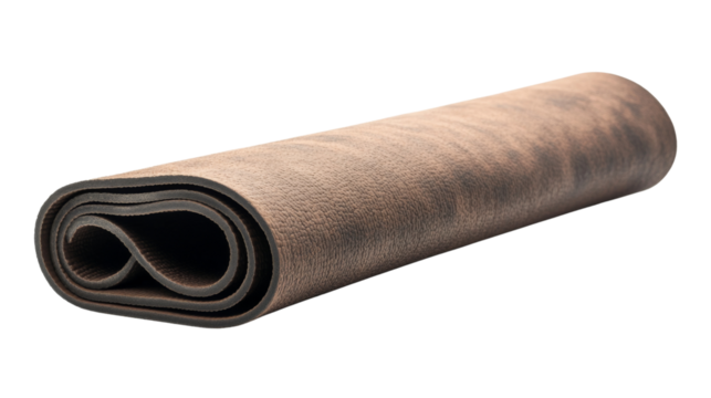 Active woman getting ready for her routine fitness workout holding a yoga mat and a water bottle for her routine excercise isolated on a png background.