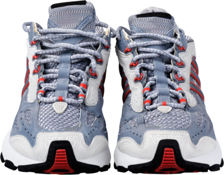 Pair of sport shoes with side view and shoelaces arrangement on transparent background