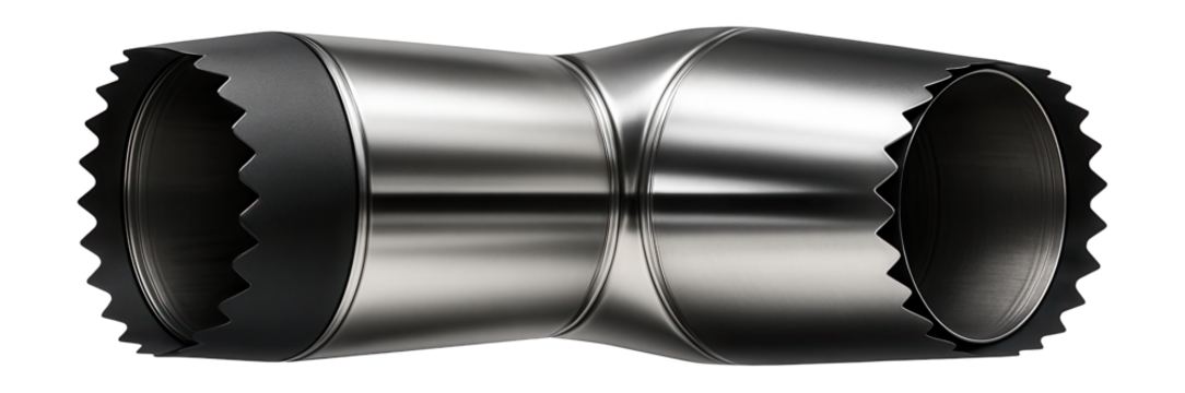 Wide band steel clamp with a V-band coupling for exhaust system assembly in vehicles.