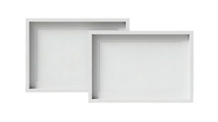 Three blank white pull-up banners, silver bases, various angles, on transparent studio background with copy space, concept for advertising display assets