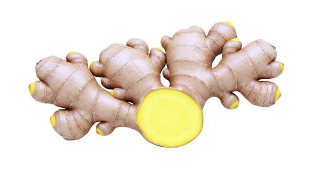 Ginger Root with a Slice on White Background