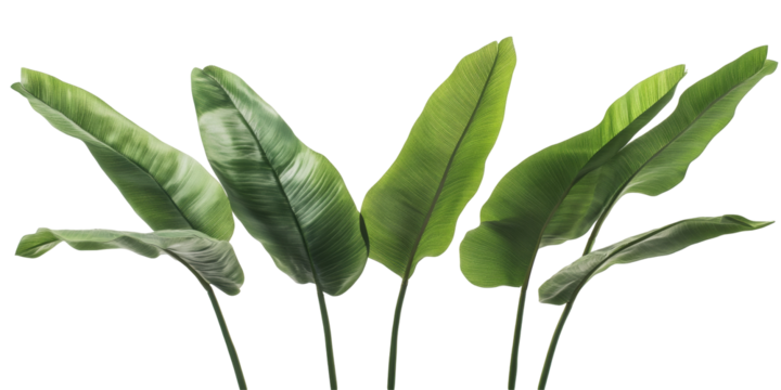 A visually appealing image of isolated banana plants, highlighting their graceful stems and expansive leaves, suggesting a sense of tranquility and natural elegance
