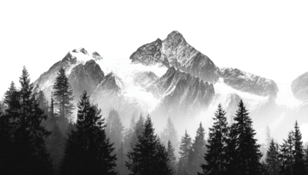 Monochrome mountain range with fog