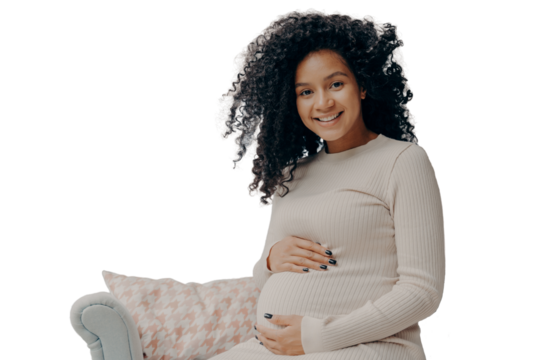 PNG, pregnant African American woman, isolated on white background.