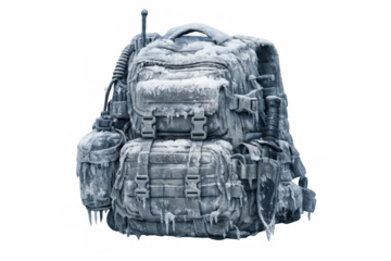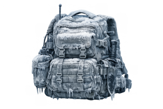 Rolled up blue sleeping pad secured with grey straps and buckles, cut out, stock png, isolated on transparent background