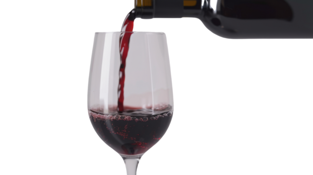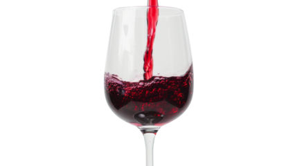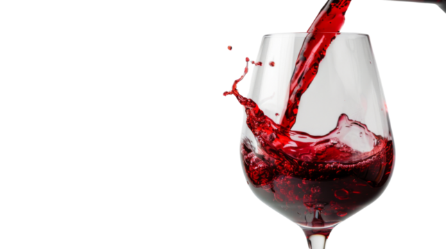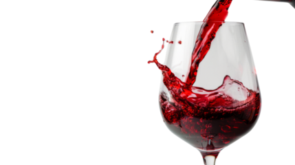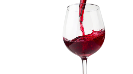 Red wine pouring in glass on white background