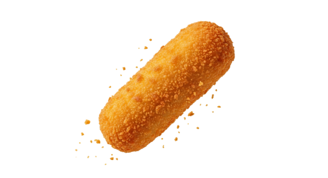 Crispy golden croquette snack on a clean white surface enticing taste with a burst of flavor and crispy texture creating a tantalizing food experience