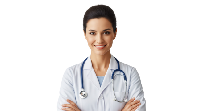 Confident female doctor smiling transparent background