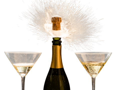 Champagne cork exploding from bottle isolated on a transparent background