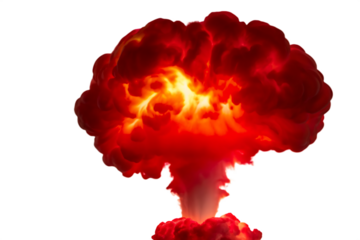 Fiery mushroom cloud explosion isolated on a transparent background