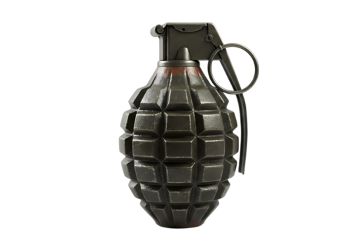 A detailed shot of a hand grenade, ideal for use in military and security-themed projects.
