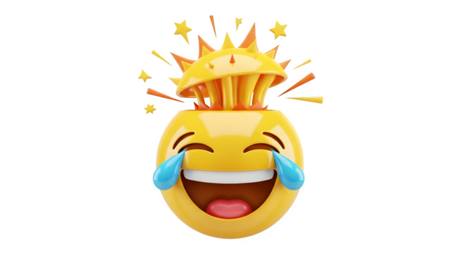 Exploding mind emoji with tears of joy expressing overwhelming emotion online