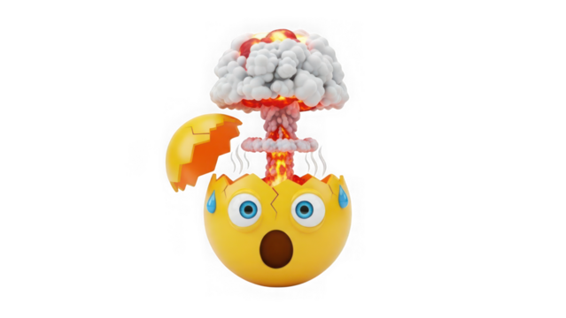 Shocked emoji with exploding head and mushroom cloud of smoke
