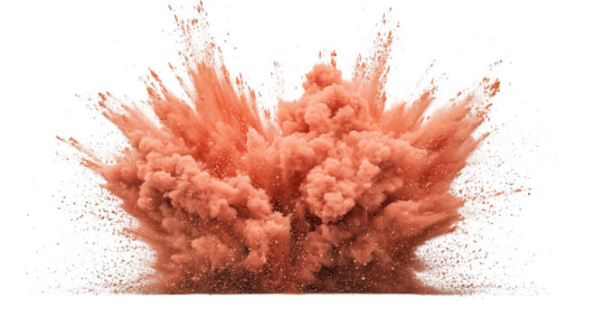 Explosive orange powder cloud: An explosion of vivid orange powder creates a dramatic visual effect, capturing the dynamic and energetic nature of an event.