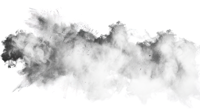 Explosive Smoke: An ethereal cloud of smoke billows outwards, capturing the power and transience of an explosive event. The monochrome palette adds a dramatic touch, intensifying the visual impact.