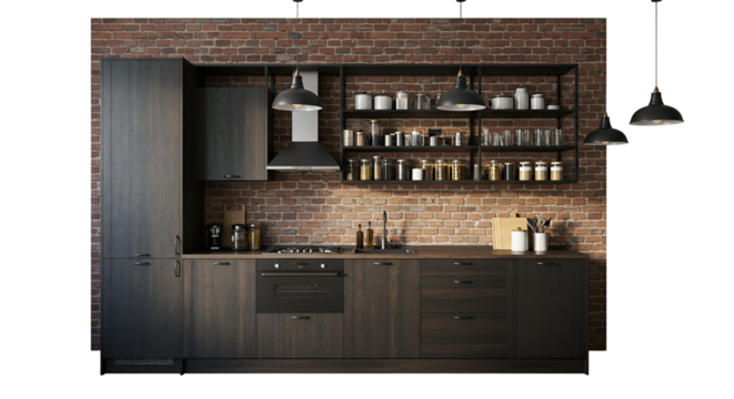 Loft Style Kitchen on Transparent Background