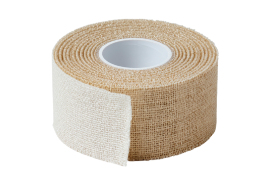 Tan adhesive tape roll; exposed adhesive visible