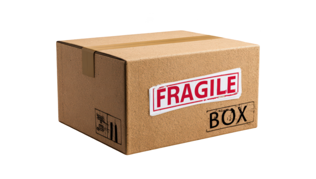 A hand holding a blank white cardboard box, isolated against a pristine transparent background. Ideal for product mockups, logistics, shipping, delivery, or commerce themes.